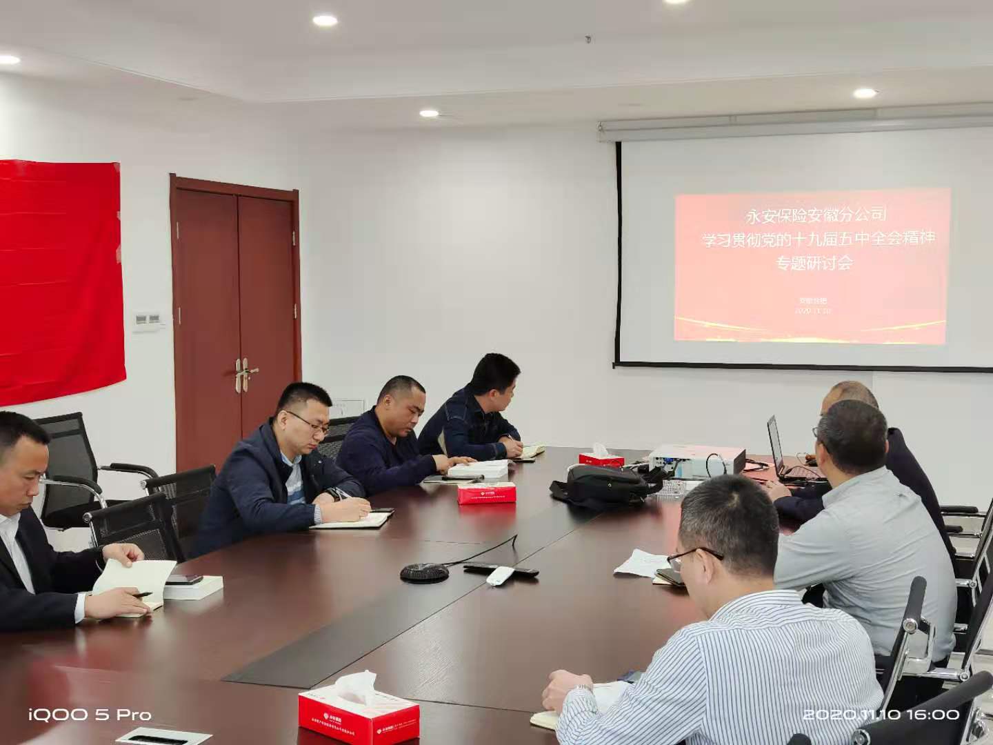 安徽分公司召开专题研讨会学习贯彻党的十九届五中全会精神
