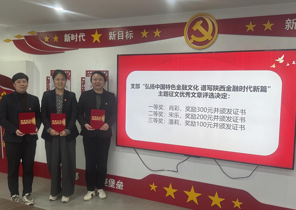 近日,按照公司党委要求,机关第九党支部组织开展“弘扬中国特色金融文化 谱写陕西金融时代新篇”征文活动。