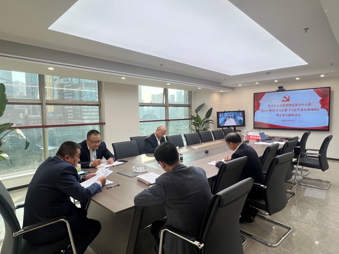 近日,四川分公司召开2025年第八次党委理论学习中心组学习会暨《习近平谈治国理政》第五卷专题研讨会,公司党委书记、董事长常磊到会巡听指导。会议由分公司党委书记、总经理张洪主持,分公司党委班子成员参加会议。